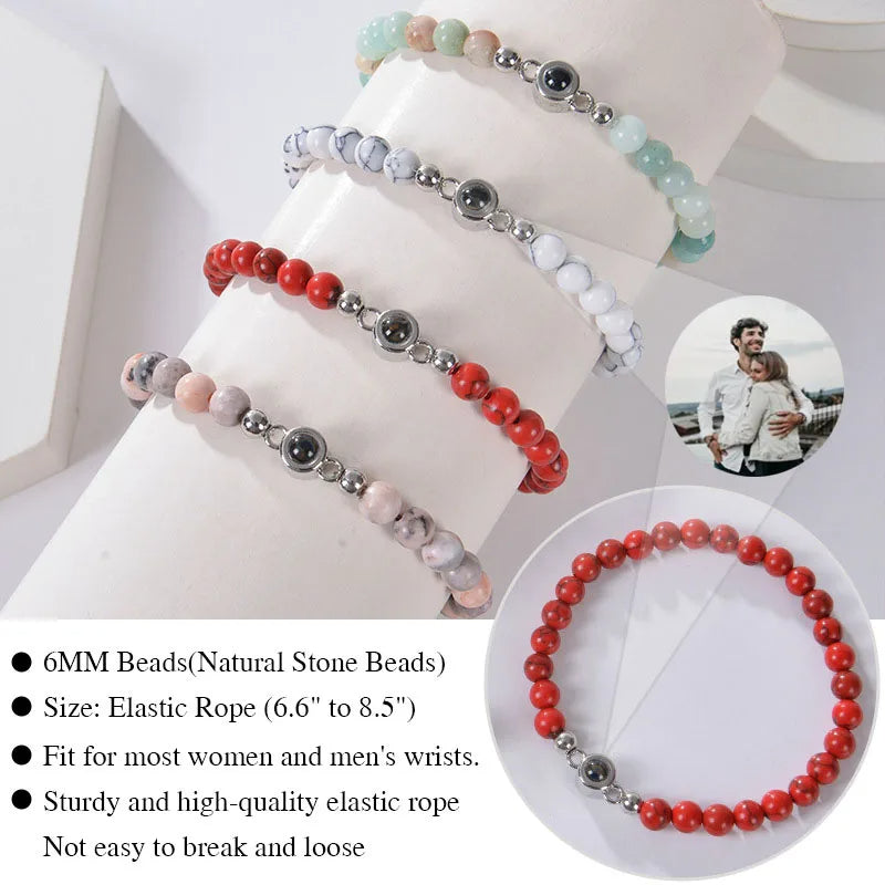 Natural Stone Custom Picture Projection Jewelry 6mm Beads Photo Bracelets.